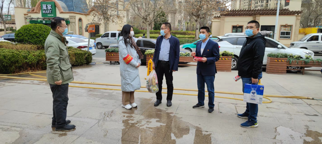 每到一個社區(qū)志愿服務(wù)點,陳啟和都詳細詢問了志愿者工作開展情況及用餐保障情況,并為志愿者送上保溫杯、食品和水果。來到萊茵小鎮(zhèn)小區(qū)時,正趕上上午全員核酸工作結(jié)束。一身“清涼”打扮的王賢亮,在捂得嚴(yán)嚴(yán)實實的人群中顯得格外亮眼。因為工作時還要套上防護服,即使天氣冷,他也只能身著單衣。透過口罩,依然能感受到他陽光燦爛的笑容,和在工作崗位上做技術(shù)質(zhì)量服務(wù)、工會工作時一個樣兒。辦公室的曹陽在封控小區(qū)參與志愿服務(wù),承擔(dān)著核酸檢測、為封管居民配送生活必需品和數(shù)據(jù)統(tǒng)計上報等工作,每天一棟樓一棟樓的登記,挨家挨戶的排查,工作更繁雜也更辛苦。按照社區(qū)防控要求,雖然不能把慰問品親自交到她的手上,慰問組也通過電話送去了慰問和關(guān)懷,并一再叮囑她,要做好自我防護。