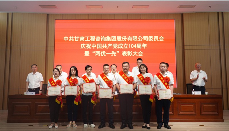 7月1日,甘肅工程咨詢集團(tuán)召開慶祝中國(guó)共產(chǎn)黨成立104周年暨“兩優(yōu)一先”表彰大會(huì),回顧黨的輝煌歷程,弘揚(yáng)偉大建黨精神,全面展示集團(tuán)黨建工作成效和黨員干部昂揚(yáng)風(fēng)貌,激勵(lì)各級(jí)黨組織和全體黨員凝心聚力、擔(dān)當(dāng)作為,奮力推動(dòng)集團(tuán)公司高質(zhì)量發(fā)展邁向新臺(tái)階。集團(tuán)公司黨委書記、董事長(zhǎng)張佩峰出席并講話,總經(jīng)理、董事陳一夫及在家領(lǐng)導(dǎo)班子成員出席,黨委委員、副總經(jīng)理孟康榮宣讀表彰決定,紀(jì)委書記、監(jiān)察專員師宗正主持會(huì)議。