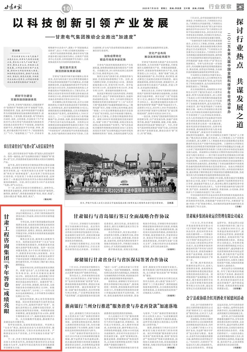 甘肅工程咨詢集團(tuán)“半年答卷”成績(jī)亮眼