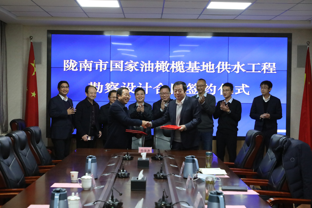 11月19日,水電設(shè)計(jì)院與隴南市水務(wù)局舉行隴南國(guó)家油橄欖基地供水工程勘察設(shè)計(jì)合同簽約儀式,水電設(shè)計(jì)院黨委副書記、總經(jīng)理陳劍,隴南市龍嘉水投公司董事長(zhǎng)王平代表雙方簽約。水電設(shè)計(jì)院黨委書記、董事長(zhǎng)朱發(fā)昇,隴南市水務(wù)局局長(zhǎng)司寶平、副局長(zhǎng)何松居,水電設(shè)計(jì)院相關(guān)領(lǐng)導(dǎo)、生產(chǎn)經(jīng)營(yíng)管理部、工程設(shè)計(jì)二院負(fù)責(zé)人及相關(guān)人員參加簽約儀式。