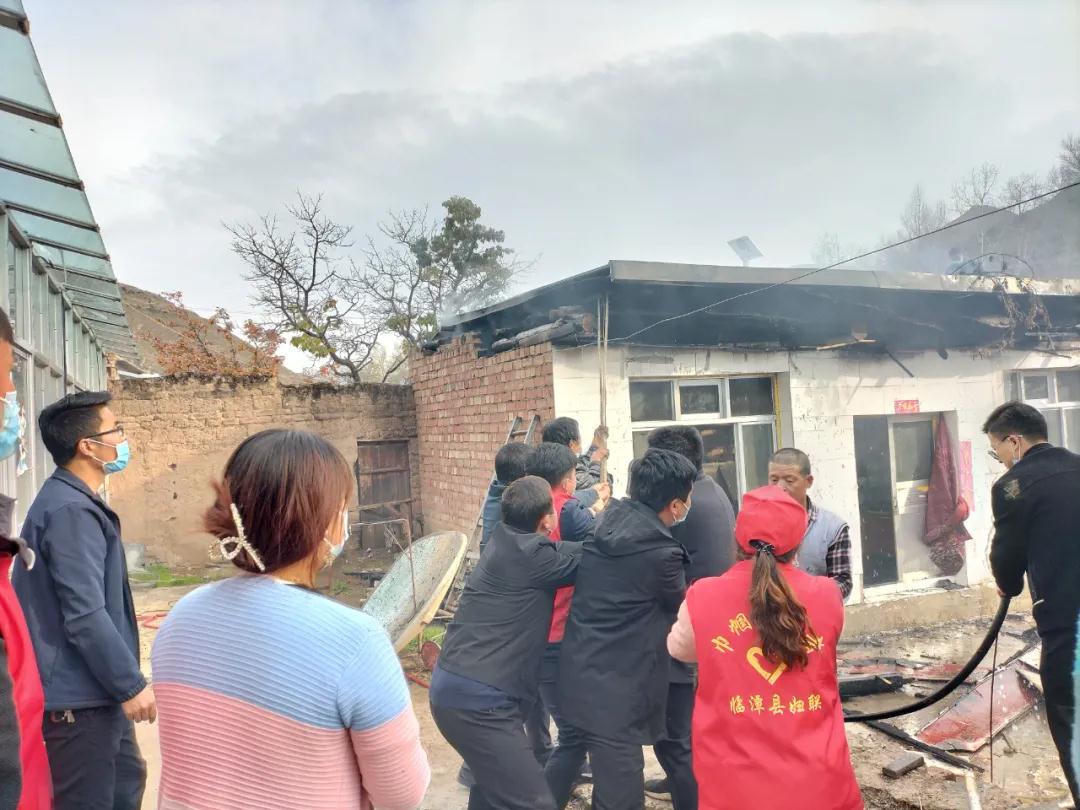 聽到村民們的呼救聲,正在村口疫情防控監(jiān)測點值守的幫扶工作隊隊員、包村干部與鎮(zhèn)領(lǐng)導(dǎo)、村“兩委”干部及志愿者一起,第一時間沖向了火災(zāi)現(xiàn)場,實施開展撲救工作?,F(xiàn)場火勢兇猛,盡管眾人一起用水傾澆,卻仍未阻止火勢蔓延。瞬間,屋頂?shù)臋M梁也燒著了,發(fā)出噼啪的響聲,房頂隱約在搖晃,可大家依然奮不顧身地救火,甚至有人沖上了危險的屋頂。