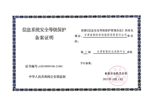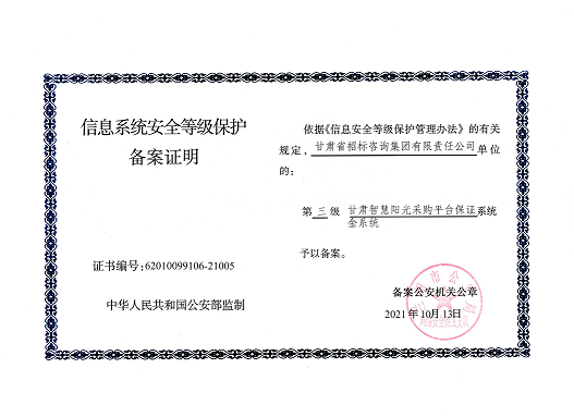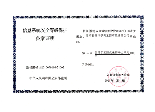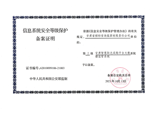 甘肅智慧陽光采購平臺系統(tǒng)通過國家三級等保認證