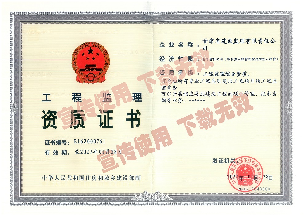 千淘萬(wàn)漉雖辛苦,吹盡黃沙始到金。2月17日,甘肅省建設(shè)監(jiān)理有限責(zé)任公司正式取得工程監(jiān)理綜合資質(zhì),成為甘肅省本土唯一擁有綜合資質(zhì)的監(jiān)理企業(yè)。