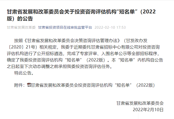 成功入圍省發(fā)改委三個(gè)行業(yè)板塊投資咨詢?cè)u(píng)估機(jī)構(gòu)“短名單”