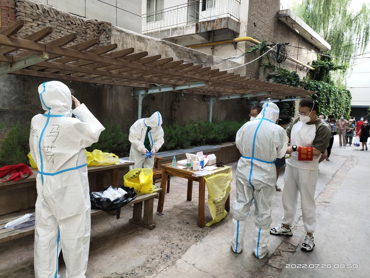 市政工程設(shè)計院工程師劉倩倩,主要負責所在小區(qū)的門崗值守及門崗巡查、核酸檢測維持秩序、分貼試管碼等系列工作。穿梭在各個工作點,協(xié)調(diào)問題和解決難題,她都游刃有余,一天下來,她的聲音早已經(jīng)沙啞,口罩也擋不住厚重的黑眼圈,但是她總是笑著說,“檢測不結(jié)束,我們不離崗,只要我守住了一個不起眼的崗位,就能守住病毒。雖然有點辛苦,但是心里踏實”。
